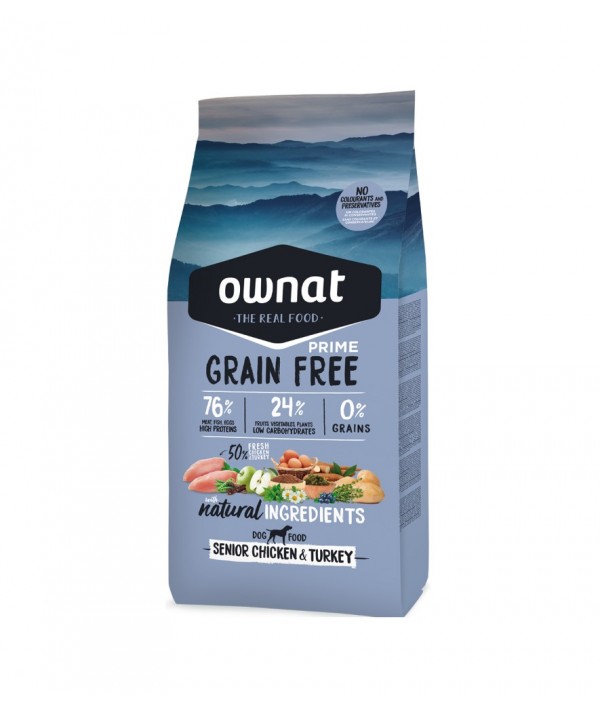 Vista rápida OWNAT GF PRIME SENIOR... Prime Destinado a perros a partir de los 7- 8 años. Con un 50% de carne fresca de pollo y pavo, y un aporte adicional de sulfato de condroitina y de...