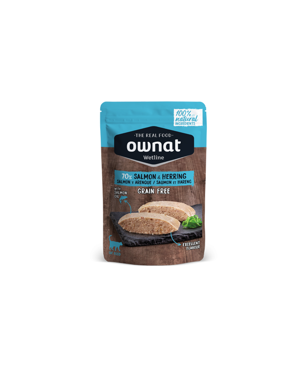 Vista rápida OWNAT WETLINE SALMON Y ARENQUE WETLINE Alimento húmedo para gatos de todas las edades y tamaños. 100% natural con una calidad y apetencia excepcionales gracias a que solo contiene...