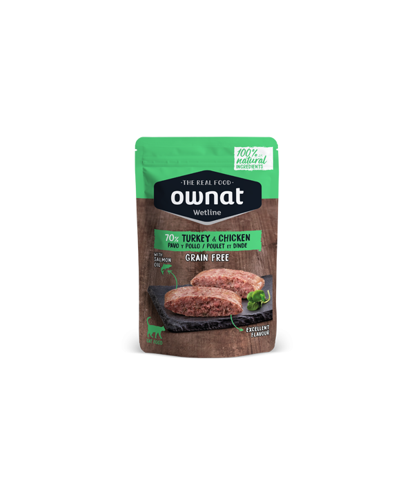 Vista rápida OWNAT WETLINE PAVO Y POLLO WETLINE Alimento húmedo para gatos de todas las edades y tamaños. 100% natural con una calidad y apetencia excepcionales gracias a que solo contiene...