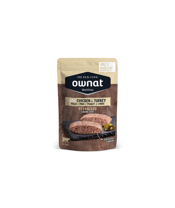 Vista rápida OWNAT WETLINE STERILIZED... WETLINE Los gatos esterilizados tienen menos necesidades energéticas y son más propensos al sobrepeso. Nuestro alimento ayuda a mantener el peso ideal, al...