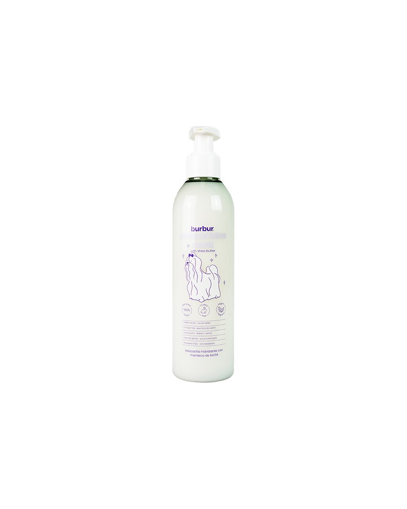 MODO DE EMPLEO: Aplicar después del champú sobre el pelaje limpio y aclarado. Dejar actuar durante 3 minutos para una hidratación extra, enjuagar con agua y secar hasta que el pelaje esté suave y brillante.