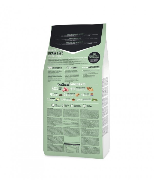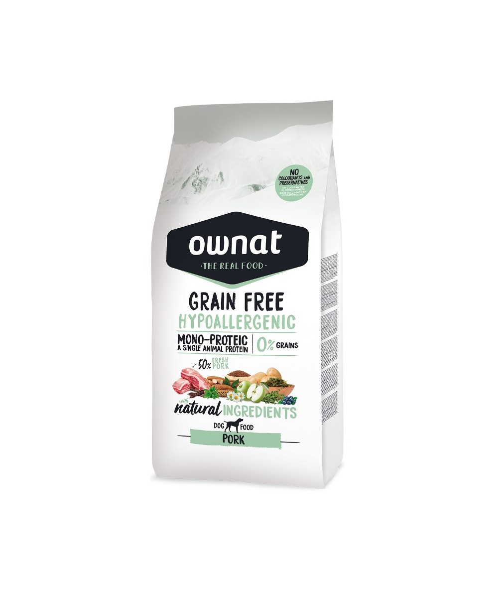 Elaborado sin cereales y exclusivamente con carne de cerdo como única fuente de proteína animal, supone una alternativa excelente para discriminar alergias e intolerancias a otras fuentes de proteínas. Contiene un 50% de cerdo fresco que aporta proteínas de alto valor biológico, un sabor y una apetencia excepcionales y asegura un mayor aprovechamiento de los nutrientes.