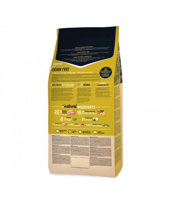 Pollo fresco* (mín. 20% antes de la extrusión), pollo deshidratado (16%), cerdo deshidratado (14%), guisantes enteros* (8%), patata deshidratada* (8%), grasa avícola (preservada con antioxidantes naturales), raíces de mandioca* (7%), salmón deshidratado (6%), proteína hidrolizada de pollo, levadura de cerveza* (1%), pulpa de remolacha, manzana* (1%), aceite de pescado (preservado con antioxidantes naturales), sal gema*, fructo y manano oligosacáridos, alfalfa deshidratada*, algas marinas deshidratadas* (500 mg/kg), glucosamina (500 mg/kg), yucca schidigera, condroitín sulfato (100 mg/kg), arándanos* (100 mg/kg), tomillo* (80 mg/kg), flor de manzanilla* (80 mg/kg), hinojo* (80 mg/kg), equinácea* (80 mg/kg), té verde* (80 mg/kg). *Ingredientes naturales